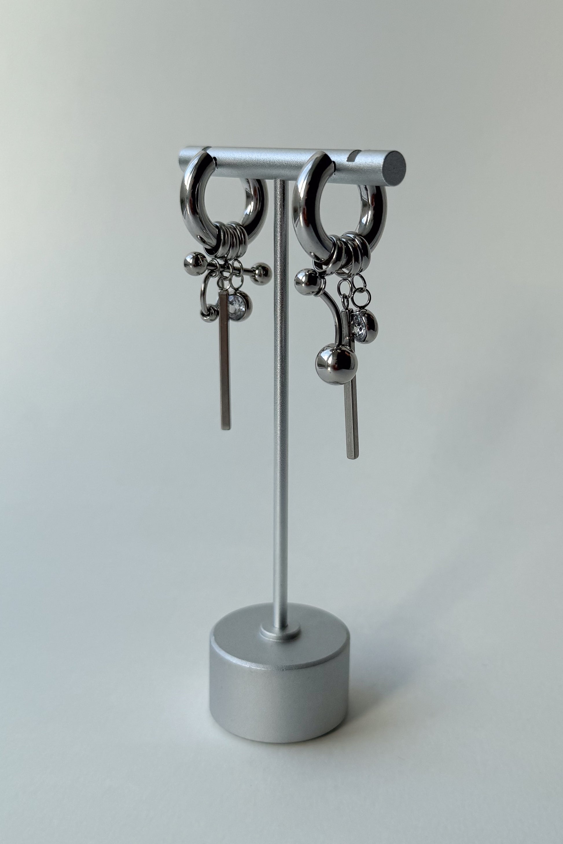 Pair of handcrafted drop earrings in silver-tone Stainless Steel.