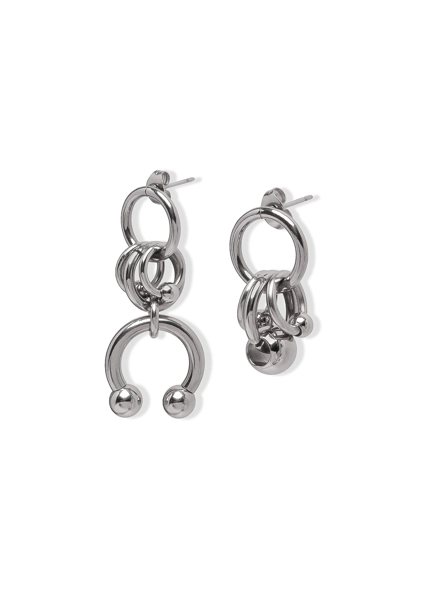 Pair of mis-match Earrings in silver-tone Stainless Steel.