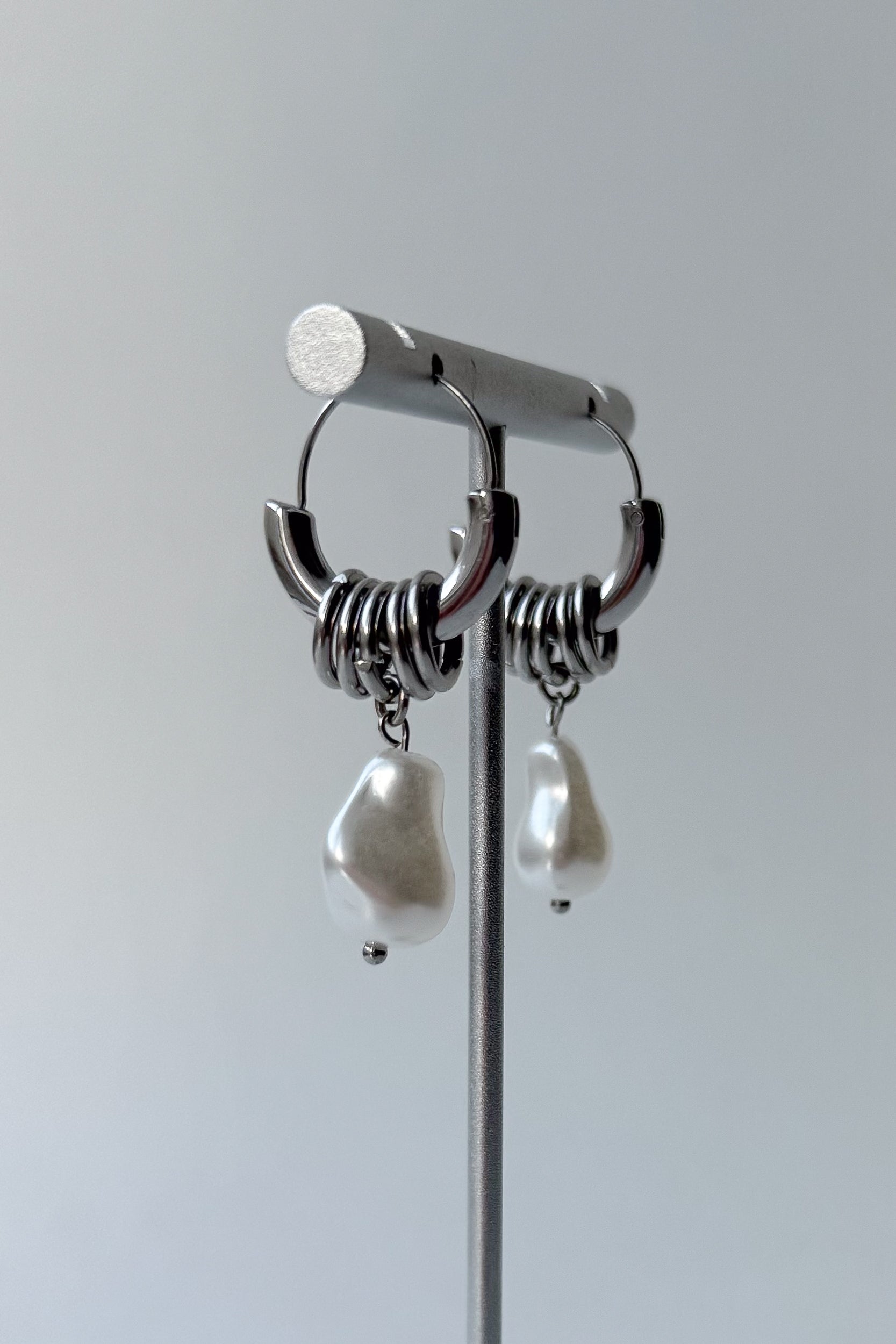 Pair of handcrafted drop earrings in silver-tone Stainless Steel.