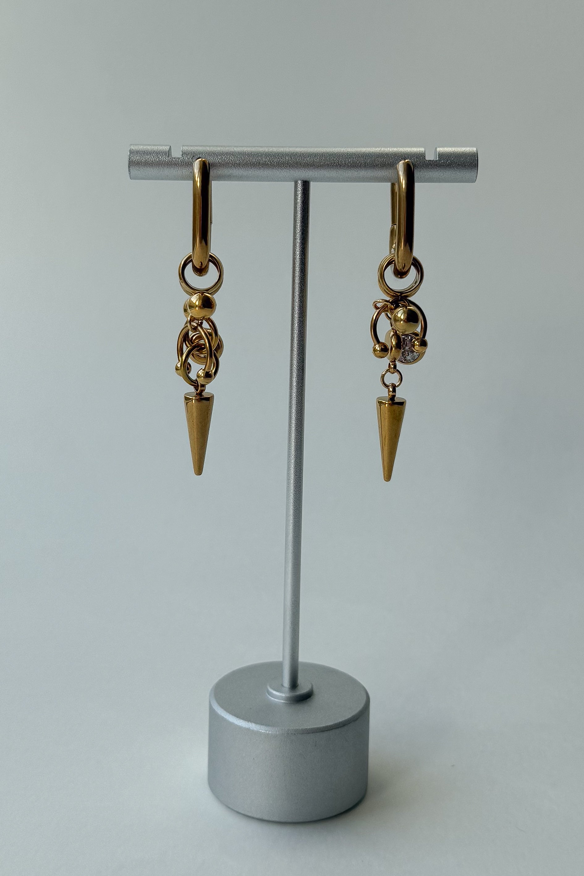 Pair of handcrafted drop earrings in gold-tone Stainless Steel.