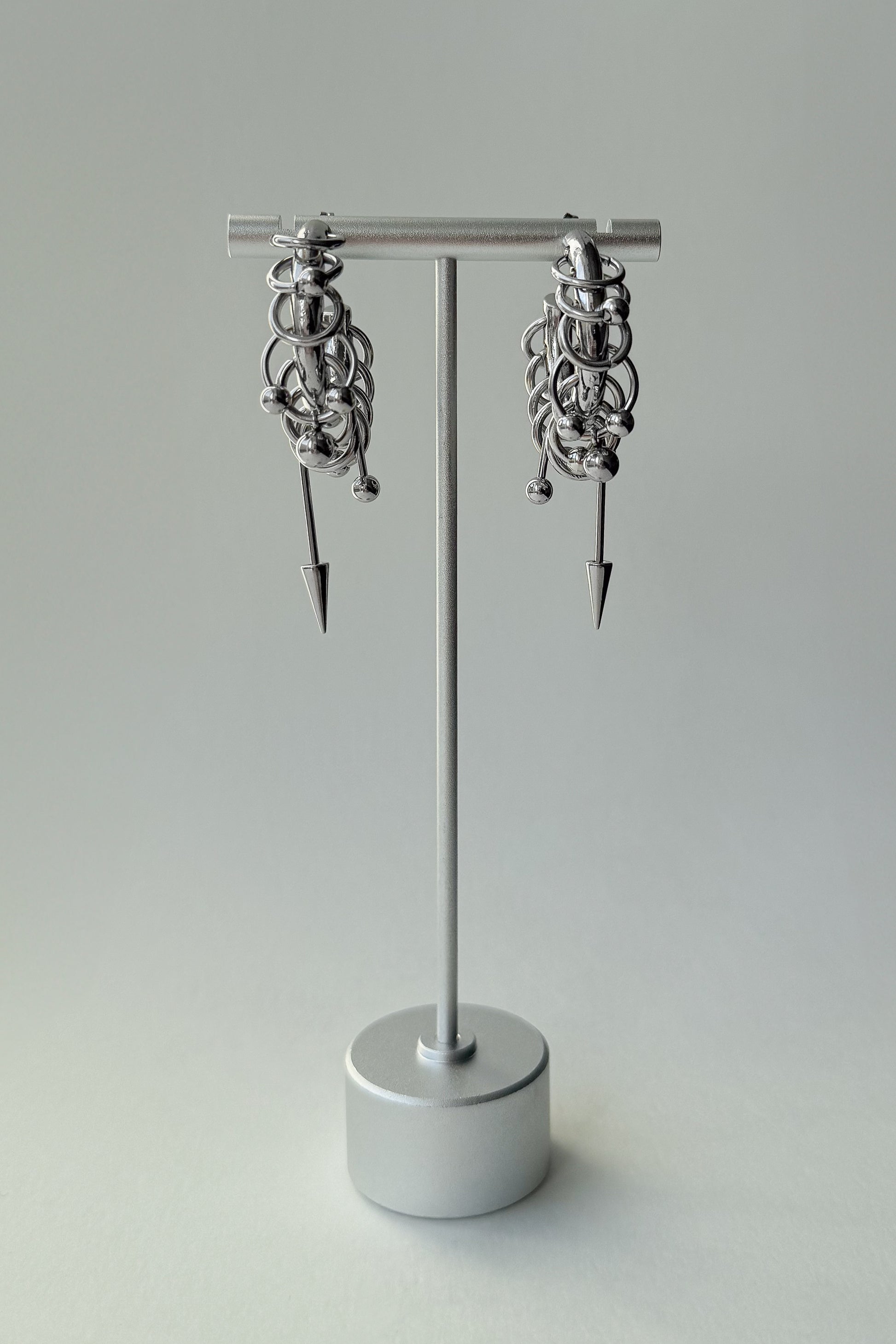 Pair of handcrafted drop earrings in silver-tone Stainless Steel.