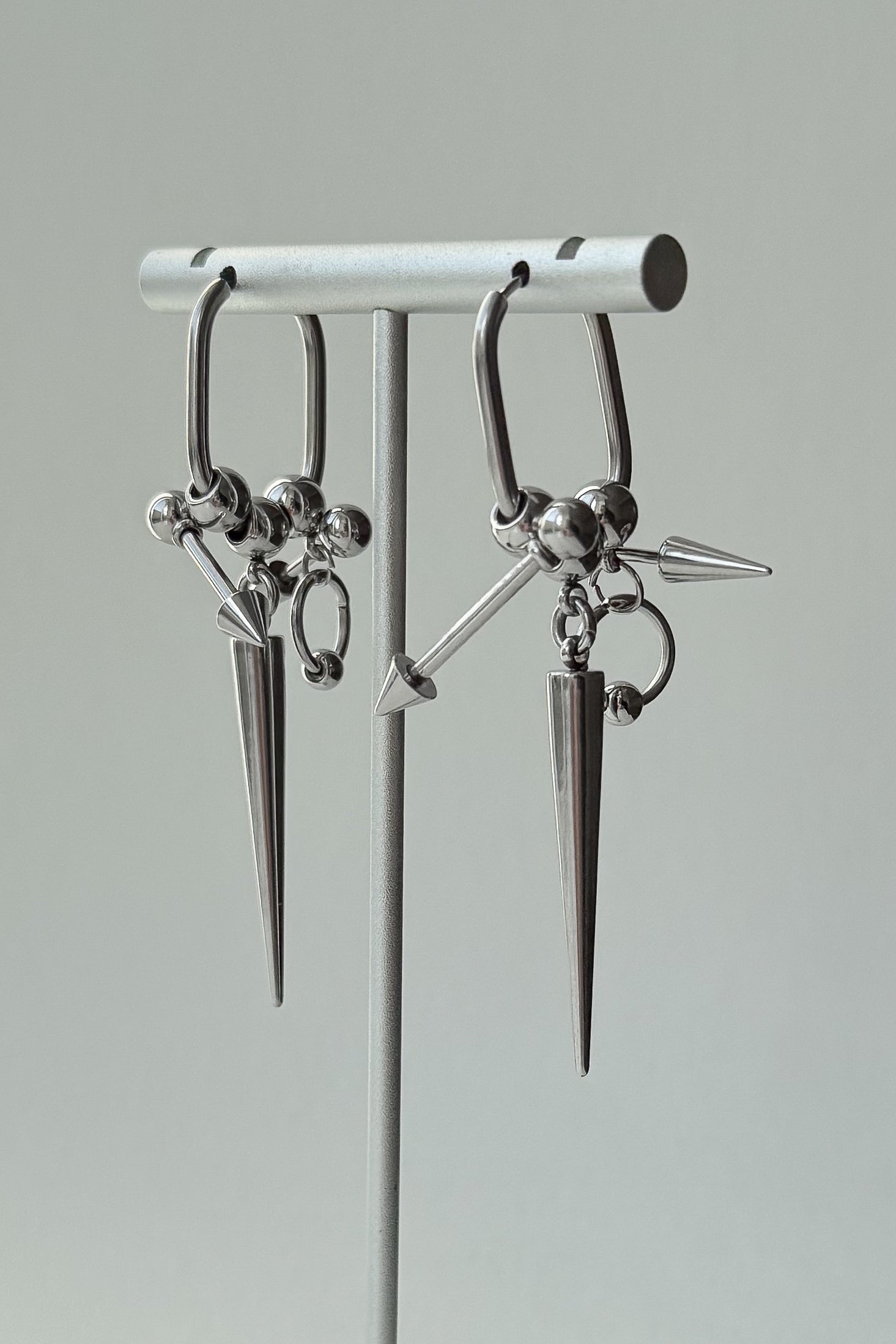 Pair of handcrafted drop earrings in silver-tone Stainless Steel.